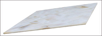1-4 mm granite, marble, mosaic, onyx, mother of pearl or glass applied to durable stoneware support in porcelain, nylon mesh or honeycomb.